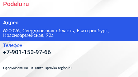 Podelu.ru по адресу 620026, Свердловская область, Екатеринбург, Красноармейская, 92а в дальнейшем Организация, размещена в следующих категориях: