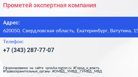 Прометей, экспертная компания по адресу 620050, Свердловская область, Екатеринбург, Ватутина, 15 в дальнейшем Организация, размещена в следующих категориях: