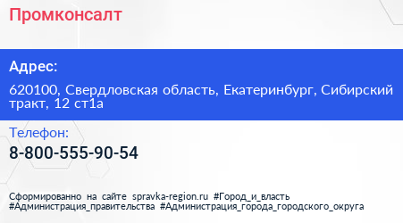 Промконсалт по адресу 620100, Свердловская область, Екатеринбург, Сибирский тракт, 12 ст1а в дальнейшем Организация, размещена в следующих категориях: