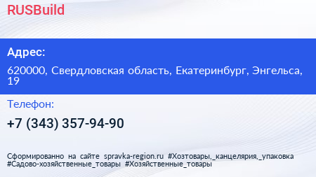 RUSBuild по адресу 620000, Свердловская область, Екатеринбург, Энгельса, 19 в дальнейшем Организация, размещена в следующих категориях: