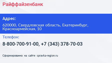 Райффайзенбанк по адресу 620000, Свердловская область, Екатеринбург, Красноармейская, 10 в дальнейшем Организация, размещена в следующих категориях: