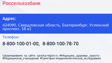 Россельхозбанк по адресу 624090, Свердловская область, Екатеринбург, Успенский проспект, 18 к1 в дальнейшем Организация, размещена в следующих категориях: