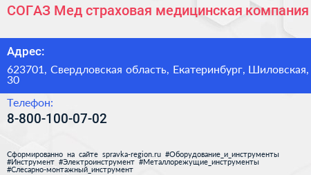 СОГАЗ-Мед, страховая медицинская компания по адресу 623701, Свердловская область, Екатеринбург, Шиловская, 30 в дальнейшем Организация, размещена в следующих категориях: