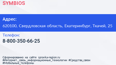 SYMBIOS по адресу 620100, Свердловская область, Екатеринбург, Ткачей, 25 в дальнейшем Организация, размещена в следующих категориях: