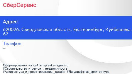 СберСервис по адресу 620026, Свердловская область, Екатеринбург, Куйбышева, 67 в дальнейшем Организация, размещена в следующих категориях: