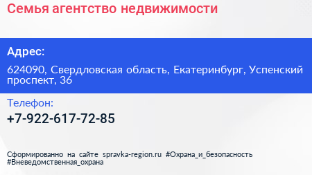 Семья, агентство недвижимости по адресу 624090, Свердловская область, Екатеринбург, Успенский проспект, 36 в дальнейшем Организация, размещена в следующих категориях: