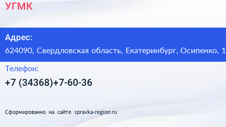 УГМК по адресу 624090, Свердловская область, Екатеринбург, Осипенко, 1 в дальнейшем Организация, размещена в следующих категориях: