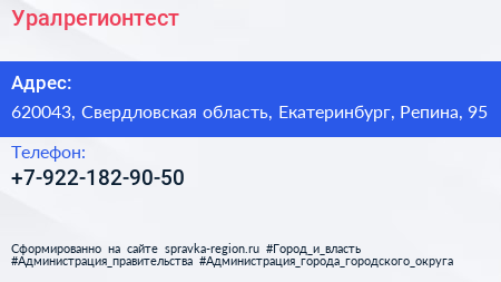Уралрегионтест по адресу 620043, Свердловская область, Екатеринбург, Репина, 95 в дальнейшем Организация, размещена в следующих категориях: