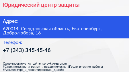 Юридический центр защиты по адресу 620014, Свердловская область, Екатеринбург, Добролюбова, 16 в дальнейшем Организация, размещена в следующих категориях: