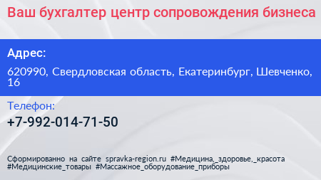 Ваш бухгалтер, центр сопровождения бизнеса по адресу 620990, Свердловская область, Екатеринбург, Шевченко, 16 в дальнейшем Организация, размещена в следующих категориях: