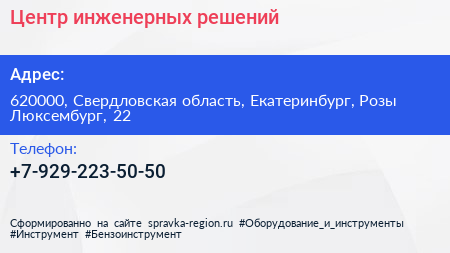 Центр инженерных решений по адресу 620000, Свердловская область, Екатеринбург, Розы Люксембург, 22 в дальнейшем Организация, размещена в следующих категориях: