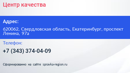 Центр качества по адресу 620062, Свердловская область, Екатеринбург, проспект Ленина, 97а в дальнейшем Организация, размещена в следующих категориях: