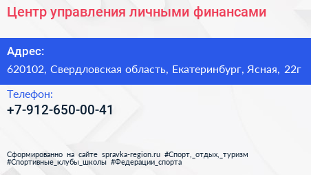 Центр управления личными финансами по адресу 620102, Свердловская область, Екатеринбург, Ясная, 22г в дальнейшем Организация, размещена в следующих категориях: