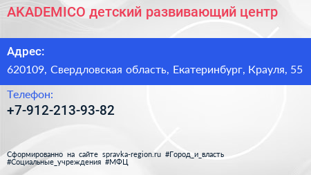 AKADEMICO, детский развивающий центр по адресу 620109, Свердловская область, Екатеринбург, Крауля, 55 в дальнейшем Организация, размещена в следующих категориях:
