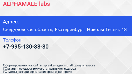 ALPHAMALE labs по адресу Свердловская область, Екатеринбург, Николы Теслы, 18 в дальнейшем Организация, размещена в следующих категориях: