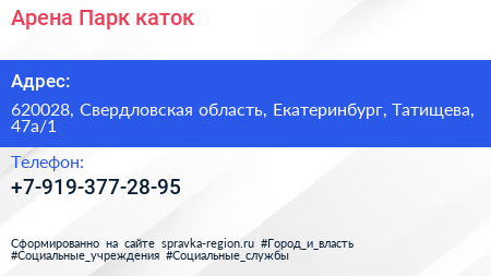 Арена Парк, каток по адресу 620028, Свердловская область, Екатеринбург, Татищева, 47а/1 в дальнейшем Организация, размещена в следующих категориях: