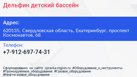 Дельфин, детский бассейн по адресу 620135, Свердловская область, Екатеринбург, проспект Космонавтов, 68 в дальнейшем Организация, размещена в следующих категориях: