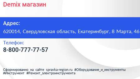 Demix, магазин по адресу 620014, Свердловская область, Екатеринбург, 8 Марта, 46 в дальнейшем Организация, размещена в следующих категориях: