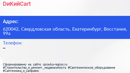 DиKийCart по адресу 620042, Свердловская область, Екатеринбург, Восстания, 99а в дальнейшем Организация, размещена в следующих категориях: