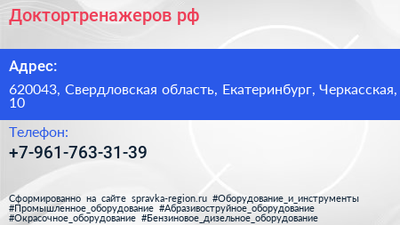 Доктортренажеров.рф по адресу 620043, Свердловская область, Екатеринбург, Черкасская, 10 в дальнейшем Организация, размещена в следующих категориях: