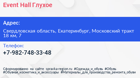 Event Hall Глухое по адресу Свердловская область, Екатеринбург, Московский тракт 18 км, 7 в дальнейшем Организация, размещена в следующих категориях: