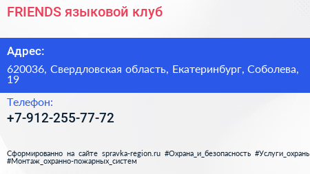 FRIENDS, языковой клуб по адресу 620036, Свердловская область, Екатеринбург, Соболева, 19 в дальнейшем Организация, размещена в следующих категориях: