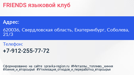 FRIENDS, языковой клуб по адресу 620036, Свердловская область, Екатеринбург, Соболева, 21/3 в дальнейшем Организация, размещена в следующих категориях: