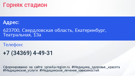 Горняк, стадион по адресу 623700, Свердловская область, Екатеринбург, Театральная, 13а в дальнейшем Организация, размещена в следующих категориях: