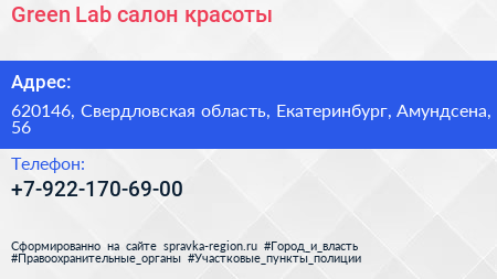 Green Lab, салон красоты по адресу 620146, Свердловская область, Екатеринбург, Амундсена, 56 в дальнейшем Организация, размещена в следующих категориях: