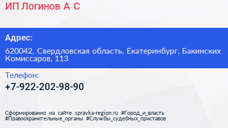 ИП Логинов А.С. по адресу 620042, Свердловская область, Екатеринбург, Бакинских Комиссаров, 113 в дальнейшем Организация, размещена в следующих категориях: