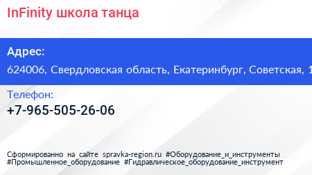 InFinity, школа танца по адресу 624006, Свердловская область, Екатеринбург, Советская, 1 в дальнейшем Организация, размещена в следующих категориях: