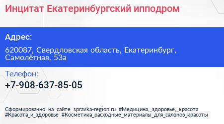 Инцитат, Екатеринбургский ипподром по адресу 620087, Свердловская область, Екатеринбург, Самолётная, 53а в дальнейшем Организация, размещена в следующих категориях: