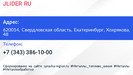 JLIDER.RU по адресу 620014, Свердловская область, Екатеринбург, Хохрякова, 48 в дальнейшем Организация, размещена в следующих категориях: