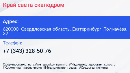 Край света, скалодром по адресу 620000, Свердловская область, Екатеринбург, Толмачёва, 22 в дальнейшем Организация, размещена в следующих категориях: