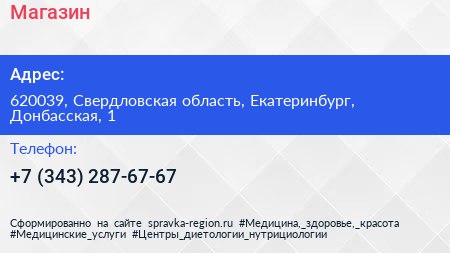 Магазин по адресу 620039, Свердловская область, Екатеринбург, Донбасская, 1 в дальнейшем Организация, размещена в следующих категориях:
