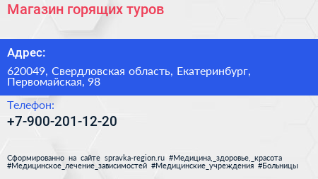 Магазин горящих туров по адресу 620049, Свердловская область, Екатеринбург, Первомайская, 98 в дальнейшем Организация, размещена в следующих категориях: