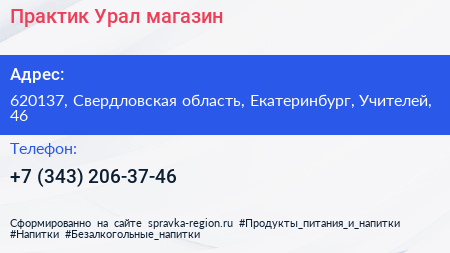 Практик Урал, магазин по адресу 620137, Свердловская область, Екатеринбург, Учителей, 46 в дальнейшем Организация, размещена в следующих категориях: