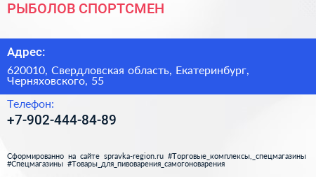 РЫБОЛОВ-СПОРТСМЕН по адресу 620010, Свердловская область, Екатеринбург, Черняховского, 55 в дальнейшем Организация, размещена в следующих категориях: