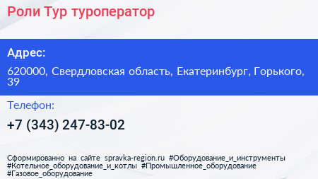 Роли-Тур, туроператор по адресу 620000, Свердловская область, Екатеринбург, Горького, 39 в дальнейшем Организация, размещена в следующих категориях: