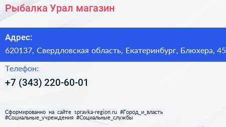 Рыбалка Урал, магазин по адресу 620137, Свердловская область, Екатеринбург, Блюхера, 45 в дальнейшем Организация, размещена в следующих категориях: