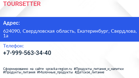 TOURSETTER по адресу 624090, Свердловская область, Екатеринбург, Свердлова, 1а в дальнейшем Организация, размещена в следующих категориях: