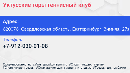 Уктусские горы, теннисный клуб по адресу 620076, Свердловская область, Екатеринбург, Зимняя, 27а в дальнейшем Организация, размещена в следующих категориях: