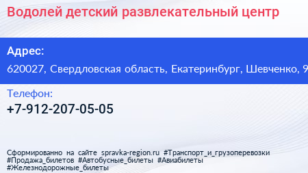 Водолей, детский развлекательный центр по адресу 620027, Свердловская область, Екатеринбург, Шевченко, 9 в дальнейшем Организация, размещена в следующих категориях: