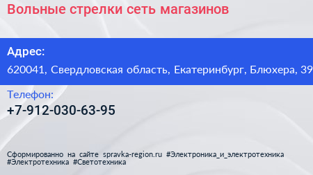 Вольные стрелки, сеть магазинов по адресу 620041, Свердловская область, Екатеринбург, Блюхера, 39 в дальнейшем Организация, размещена в следующих категориях: