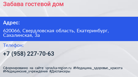 Забава, гостевой дом по адресу 620066, Свердловская область, Екатеринбург, Сахалинская, 3а в дальнейшем Организация, размещена в следующих категориях: