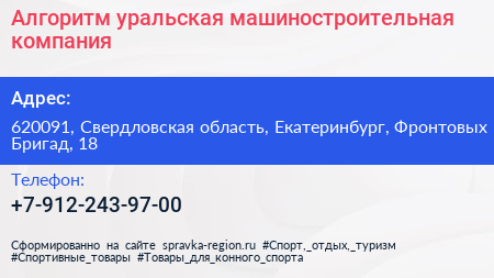 Алгоритм, уральская машиностроительная компания по адресу 620091, Свердловская область, Екатеринбург, Фронтовых Бригад, 18 в дальнейшем Организация, размещена в следующих категориях: