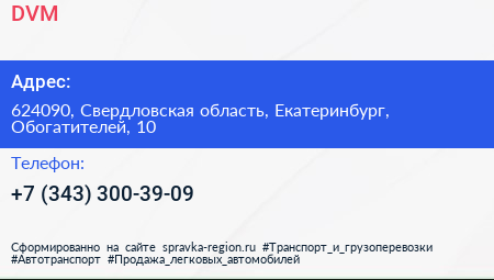 DVM по адресу 624090, Свердловская область, Екатеринбург, Обогатителей, 10 в дальнейшем Организация, размещена в следующих категориях: