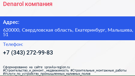 Denarol, компания по адресу 620000, Свердловская область, Екатеринбург, Малышева, 51 в дальнейшем Организация, размещена в следующих категориях: