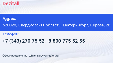 Dezitall по адресу 620028, Свердловская область, Екатеринбург, Кирова, 28 в дальнейшем Организация, размещена в следующих категориях: