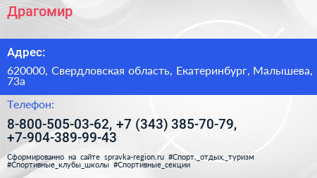 Драгомир по адресу 620000, Свердловская область, Екатеринбург, Малышева, 73а в дальнейшем Организация, размещена в следующих категориях: